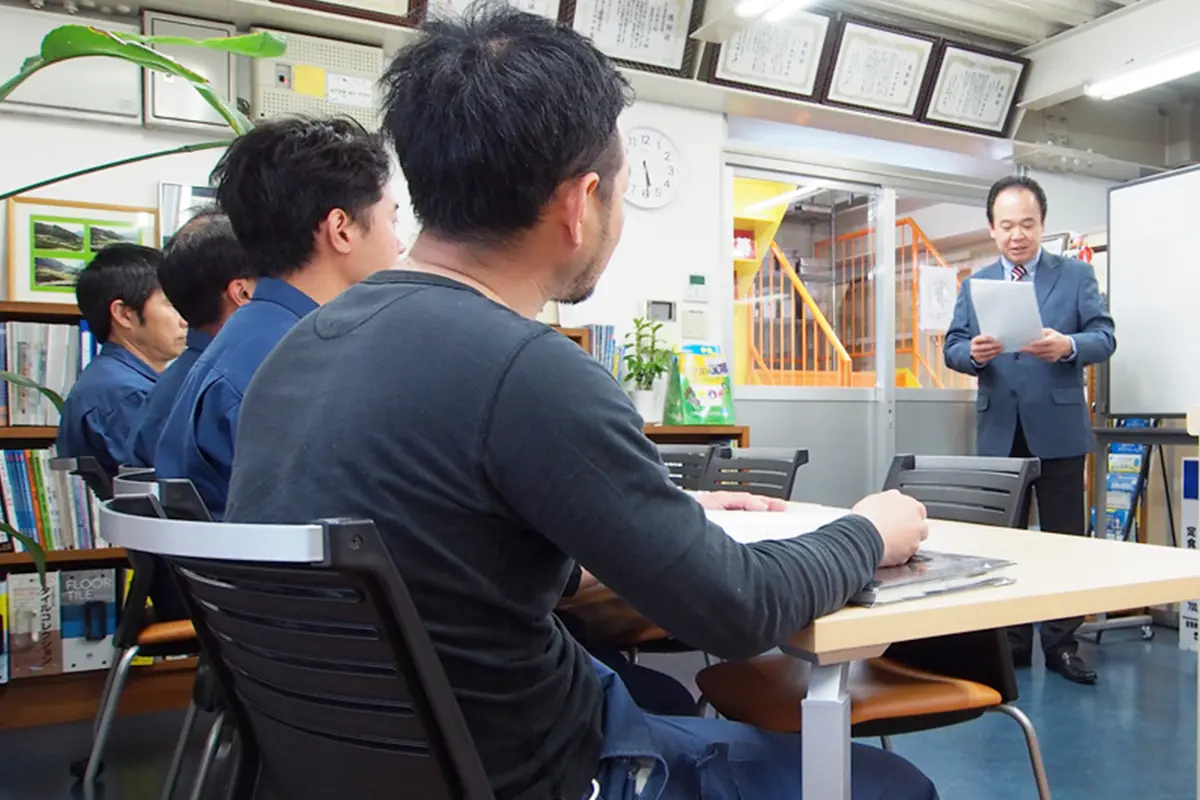 1年目は、先輩社員に同行し、メンテナンスや施工現場での補助として、手元について学んで頂きます。2年目は、習熟度を確認しながら、お客様との応対や現場での実際の手順などを自身で、作業してもらいます。